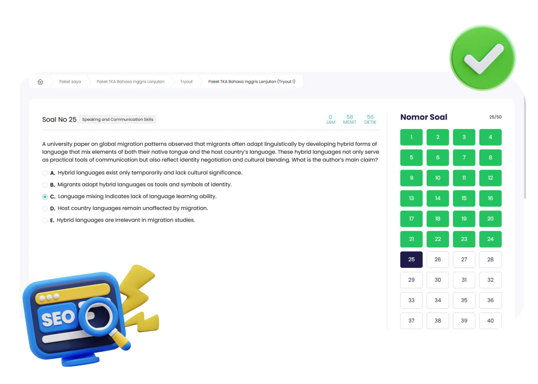 Kami memahami bahwa persiapan yang matang adalah kunci kesuksesan. Platform Linguistik.id hadir dengan sistem Computer Based Test (CBT) yang dirancang khusus untuk memberikan pengalaman uji kompetensi yang nyata dan efisien.