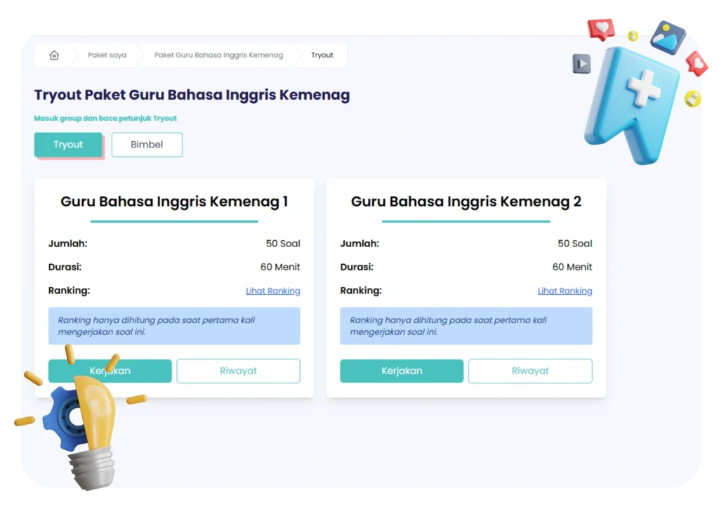 Hasil tryout tidak hanya menampilkan skor akhir, tetapi juga pembahasan dan evaluasi yang membantu Anda memahami kekuatan serta area yang perlu ditingkatkan.
